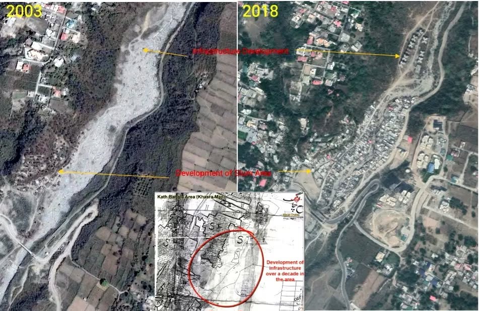 वरिष्ठ भूविज्ञानी और एचएनबी गढ़वाल केंद्रीय विश्वविद्यालय में भूविज्ञान के विभागाध्यक्ष प्रो. एमपीएस बिष्ट ने राज्य गठन के महज तीन साल बाद और इसके 15 साल बाद 2018 के चित्रों का अध्ययन किया। उन्होंने स्पष्ट किया कि जो काठबंगला क्षेत्र वर्तमान में अतिक्रमण से पूरी तरह भर चुका है, वहां वर्ष 2003 में रिस्पना नदी के दोनों किनारे पूरी तरह खाली थे।